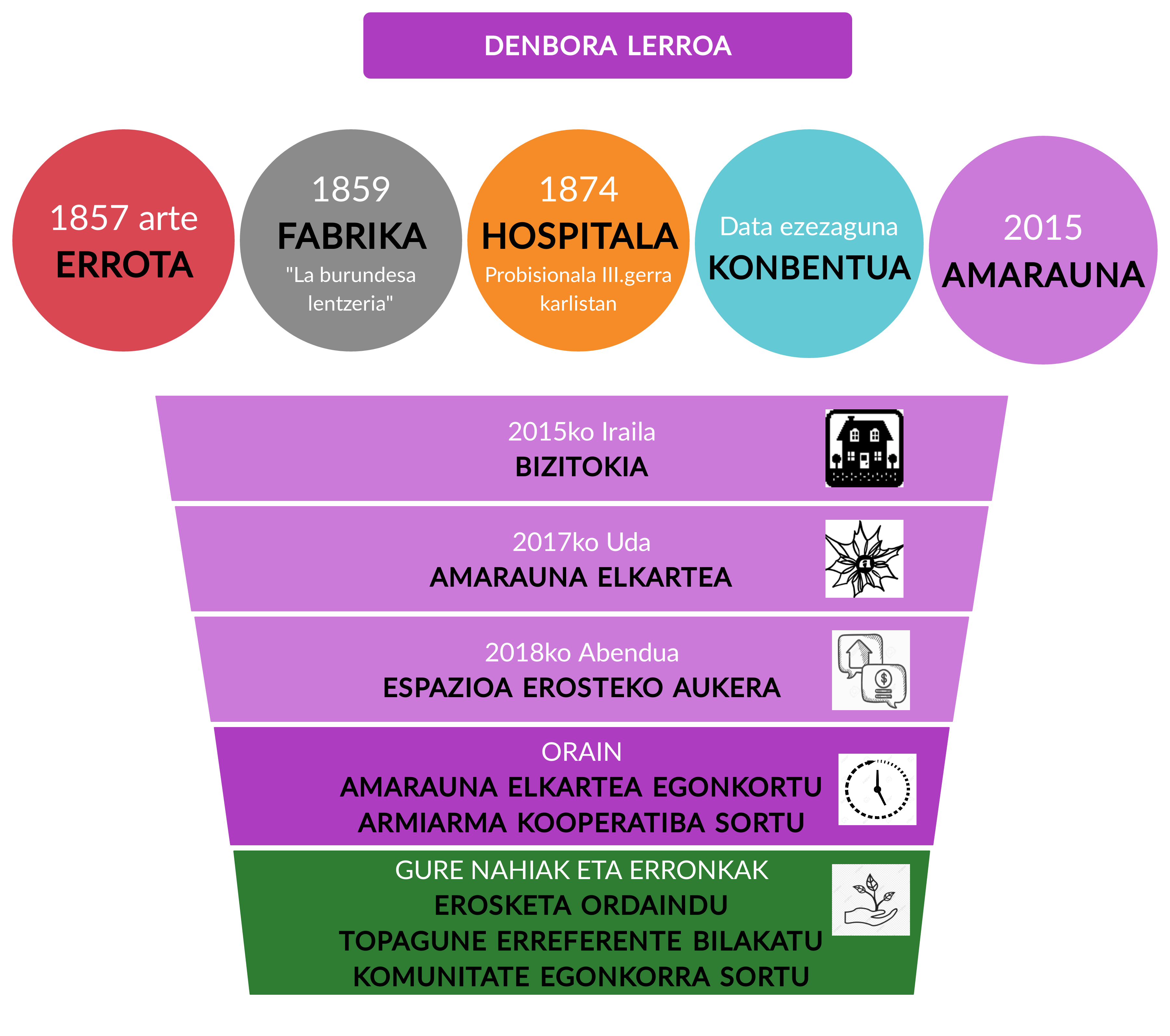 Une honetan, lege-mailan Amaraunako espazioaren erabilera aldatzeko bidean gaude. Erlijiosoen egoitza izatetik, proiektuaren helburuetara eta nahietara gehien egokitzen den erabilerara aldatzeko. Horretarako, Ziordiako Udalari aterpetxe bat martxan jartzeko proiektua aurkeztu diogu.
