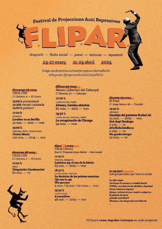 ¡¡¡SEGONA semana de F.L.I.P.A.R, el Festival de Projeccions Anti Repressives!!!