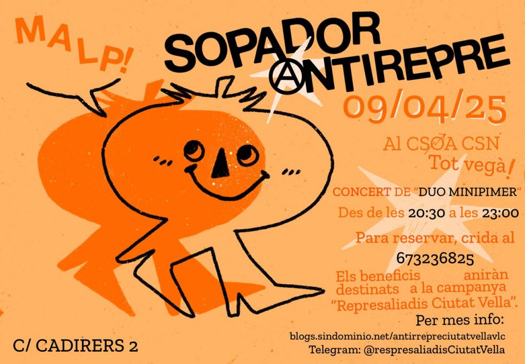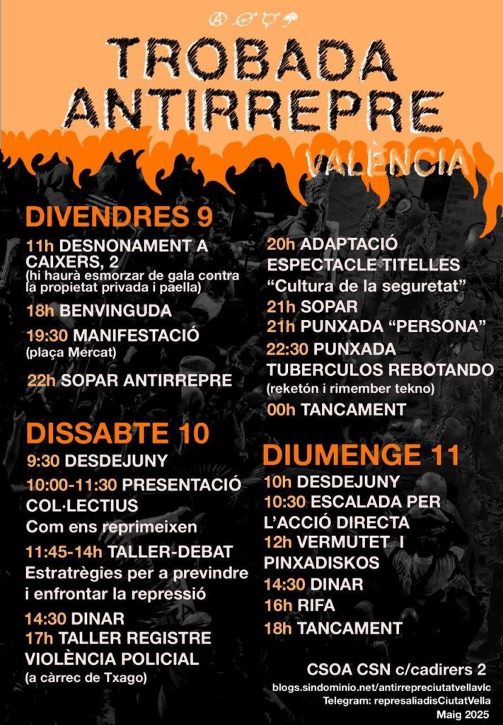 Comencem la campanya conjunta antirrepre en resposta a la forta repressió iniciada en els últims temps en Ciutat Vella (València). Aquesta es difondrà a nivell local i estatal en els següents mesos, a través de multitut de col.lectius, mitjans i amb un gran esdeveniment en el CSOA CSN al barri Ciutat Vella de València.