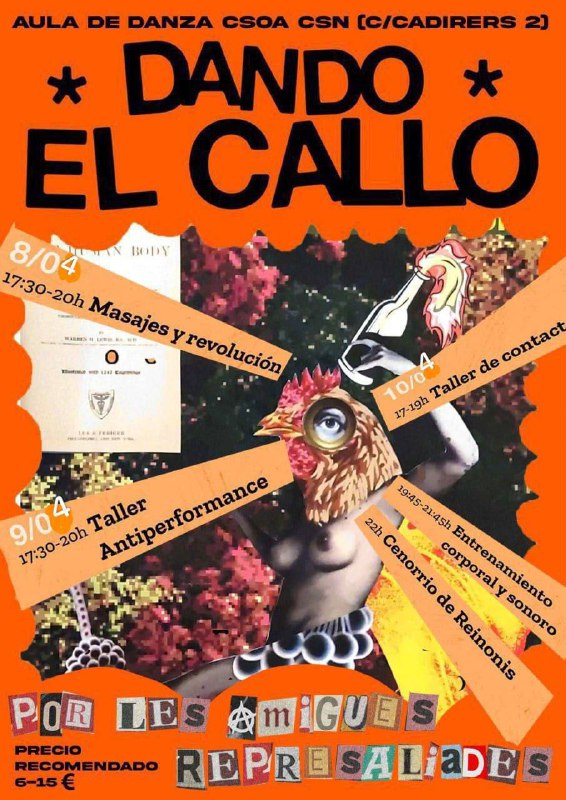 Dejaremos un bote de aportación consciente, (precio recomendado: 6-15€) ya que todos los beneficios irán dirigidos a la Campaña Antirrepresiva de les Represaliadis de Ciutat Vella.