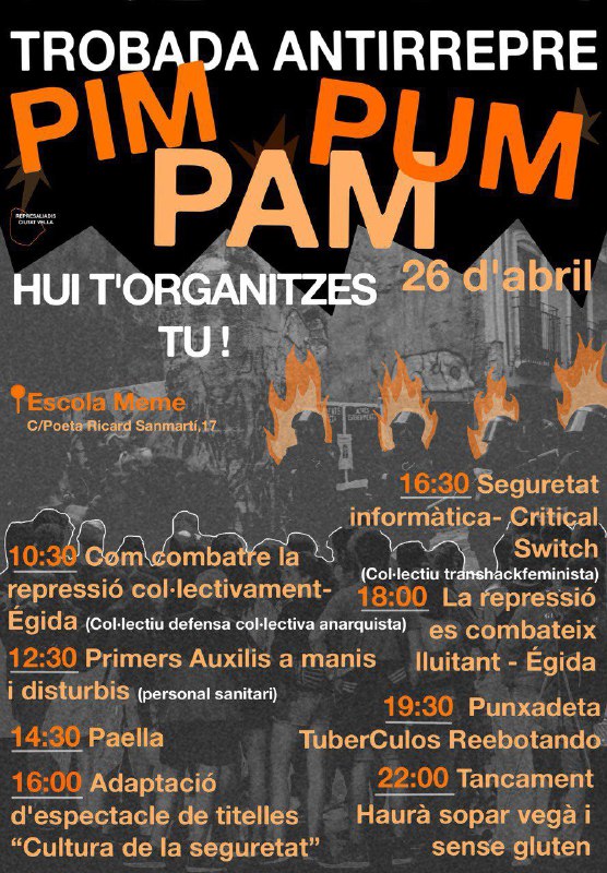 10:30 – Com combatre la repressió col.lectivament. Per Ègida, col.lectiu defensa col.lectiva anarquista.