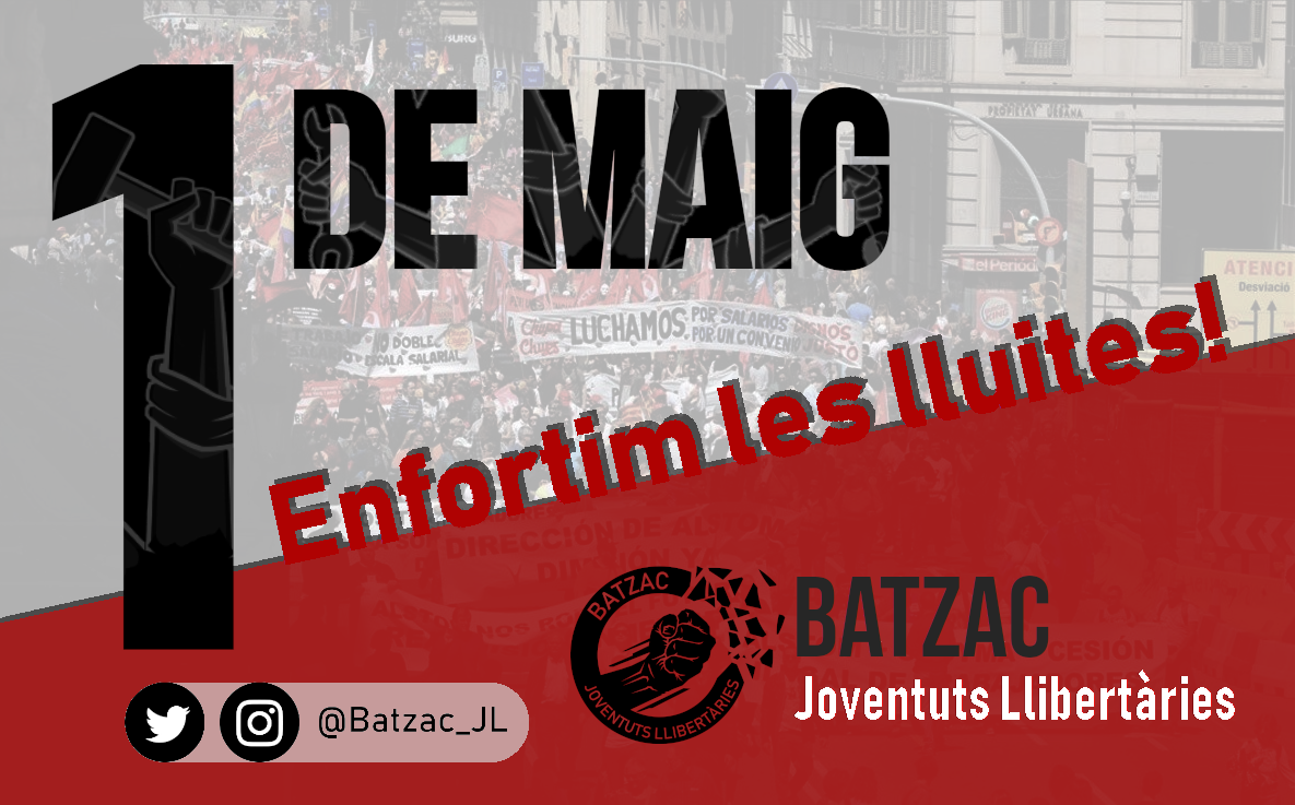 El capitalisme genera misèria. Durant anys hem vist com les desigualtats s’han agreujat i com cada cop hi ha més separació entre els de dalt i els de baix. La diferència i l’explotació d’una classe per l’altra segueix sent palpable gairebé 150 anys després de la Revolta d’Haymarket en favor de la jornada laboral de vuit hores, que va suposar la condemna a mort per cinc anarquistes. En l’actualitat la veritable lògica del capitalisme és tangible: drets perduts, salaris a la baixa, accidents constants als llocs de feina, alta temporalitat, jornades laborals que excedeixen les vuit hores i horaris que no permeten la conciliació familiar i personal… Aquest retrocés en matèria laboral i de condicions de vida de les últimes dècades evidencia que sense lluita, sense pressió des dels llocs de feina i dels carrers, no es produeix cap millora, al contrari, el pes de la bota patronal, política i judicial ens ofega cada cop més com a classe.