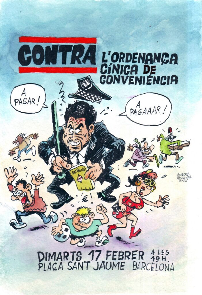 L’aprovació de la nova ordenança cívica el passat 19 de desembre (amb els vots a favor de PSC, Junts i ERC, i per descomptat de PP i Vox) i la seva entrada en vigor a partir del pròxim 15 de febrer, és un pas cap a un nou cicle de criminalització i control dels usos de l’espai públic, que afecta diferents col·lectius socials (treballadores sexuals, venedores i venedors ambulants, infants, persones en situació de carrer…) i a la mateixa llibertat d’expressió en l’ús polític, social i cultural del carrer.