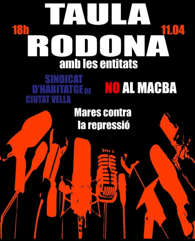 Avui a les 18h taula redona de no al MACBA + SHCV + Mares contra la repressió.