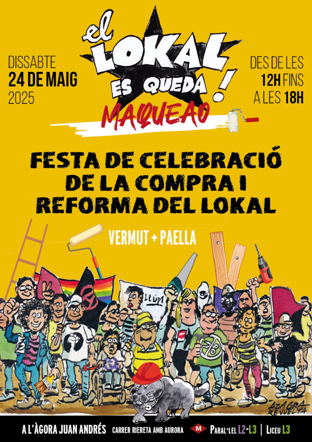 El dissabte per la celebració convidem a les companyes de Som Barri Vallcarca perqué ens expliquin la situació de la seva lluita: Vallcarca per viure i no per especular!