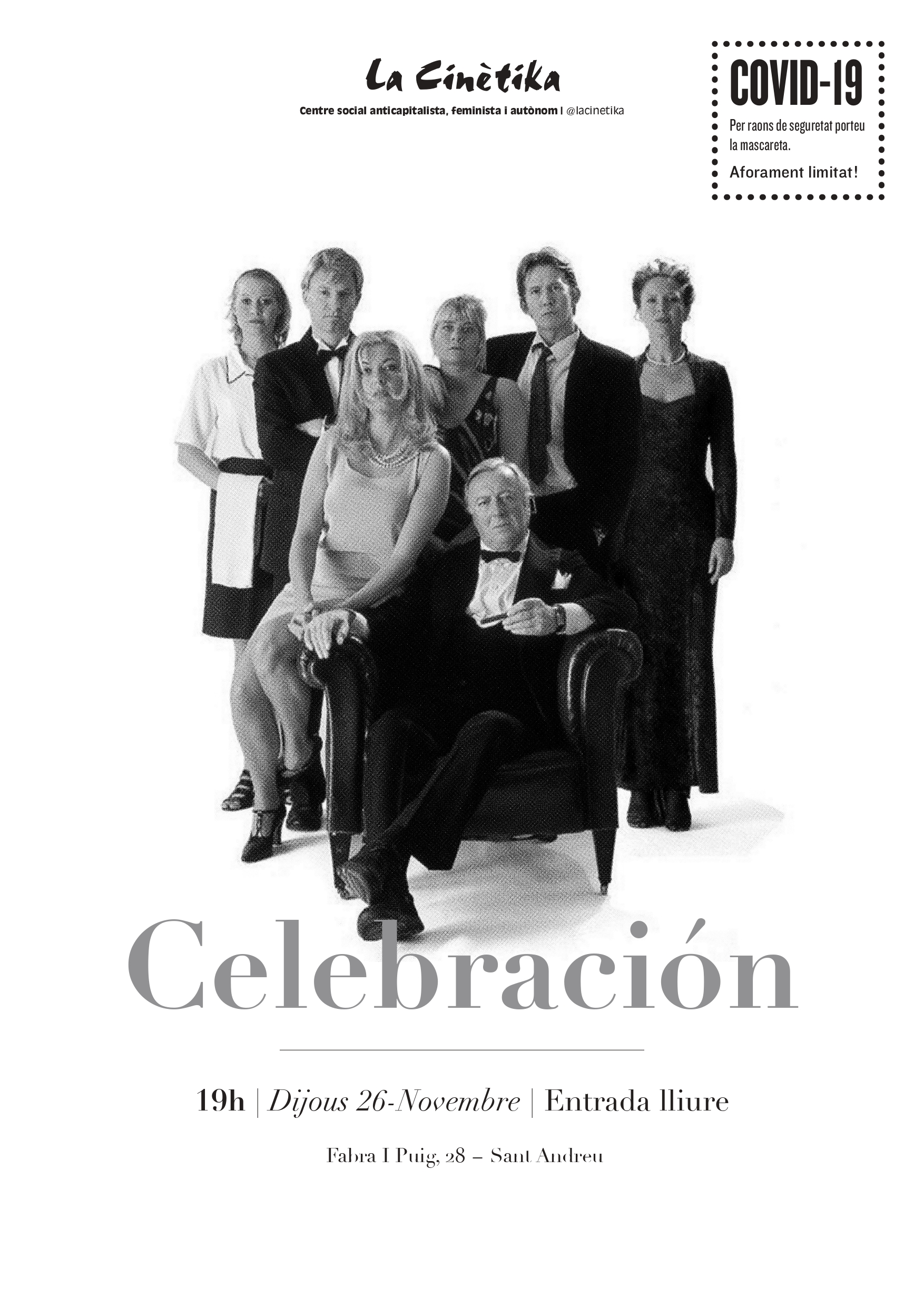 Thomas Vinterberg. Dinamarca, 1998. 105min IMPORTANTE: NUEVO HORARIO! EMPEZAMOS A LAS 19H El filme danés , considerado el primero del movimiento cinematográfico Dogma, arranca con la llegada de Christian a la casa familiar después de años de ausencia y distanciamiento. La familia se prepara para celebrar el sesenta cumpleaños de Helge, el patriarca. Todo cambia en […]