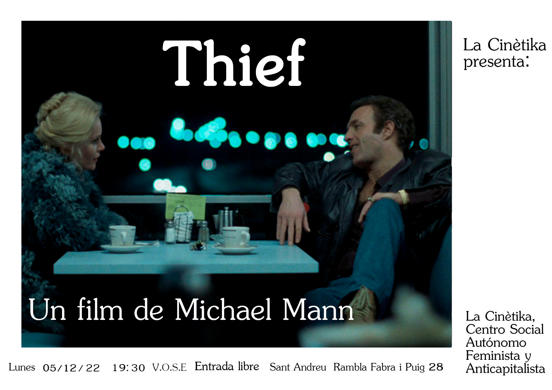 El dilluns 5 de desembre a les 19:30h “Proyecciones Grieta” projectarà Thief de 1981 i 123 minuts de durada, dirigida per Michael Mann. Frank és un lladre de joies expert en el negoci dels diamants. No obstant això, després d’haver passat alguns anys en la presó arriba a la conclusió […]