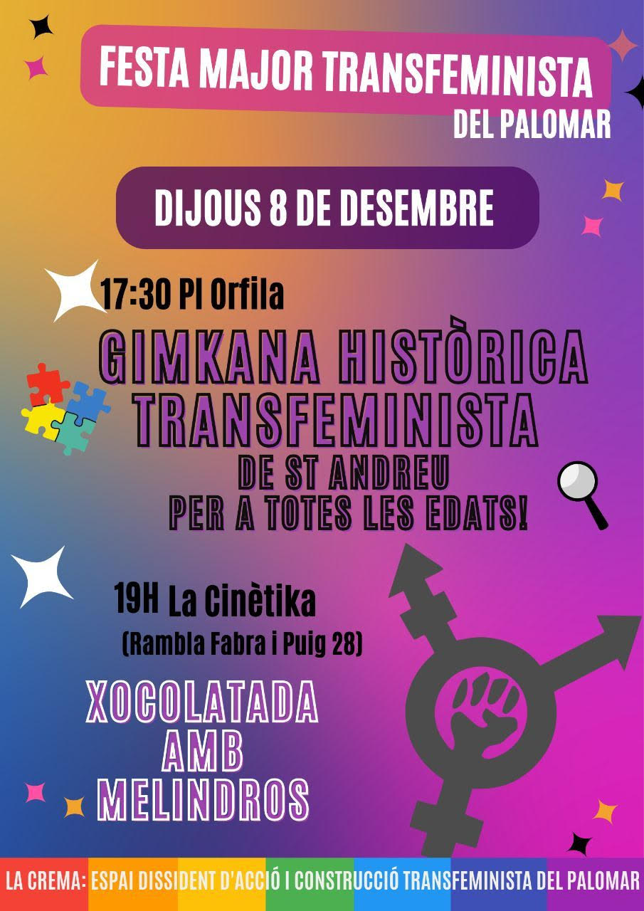 Ja la tenim aquí: per Festa Major de St Andreu volem gaudir d’una Gimkana Històrika Transfeminista de Palomar! Vine a conèixer els secrets del poble amb jocs i pistes per a perris i humanes de totes les edats, i acabarem amb una xocolatada amb melindros (tot vegà, eh!). Serà el […]