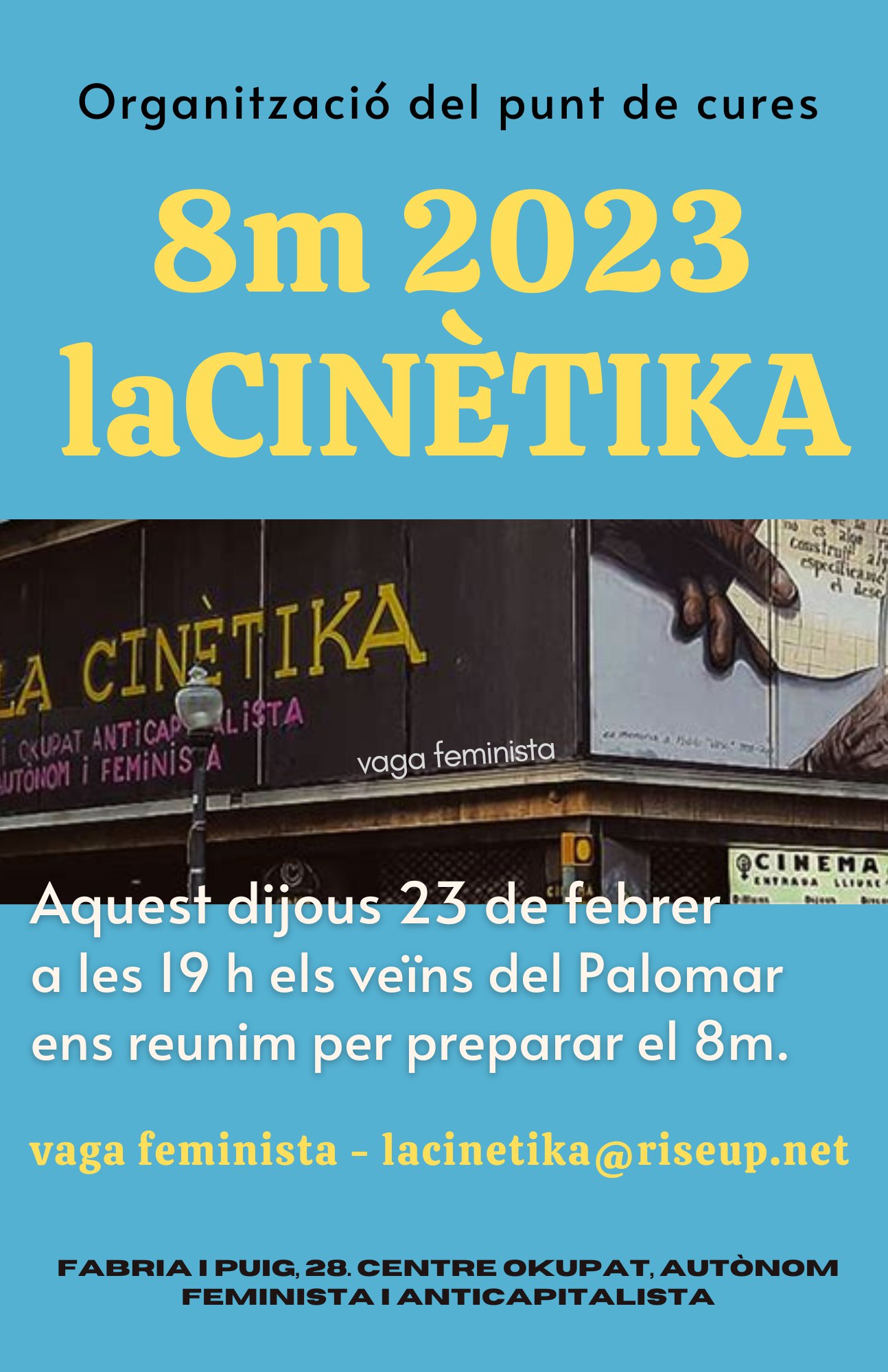 Ens trobarem el dijous 23 de febrer a les 19h al hall de La Cinètika.