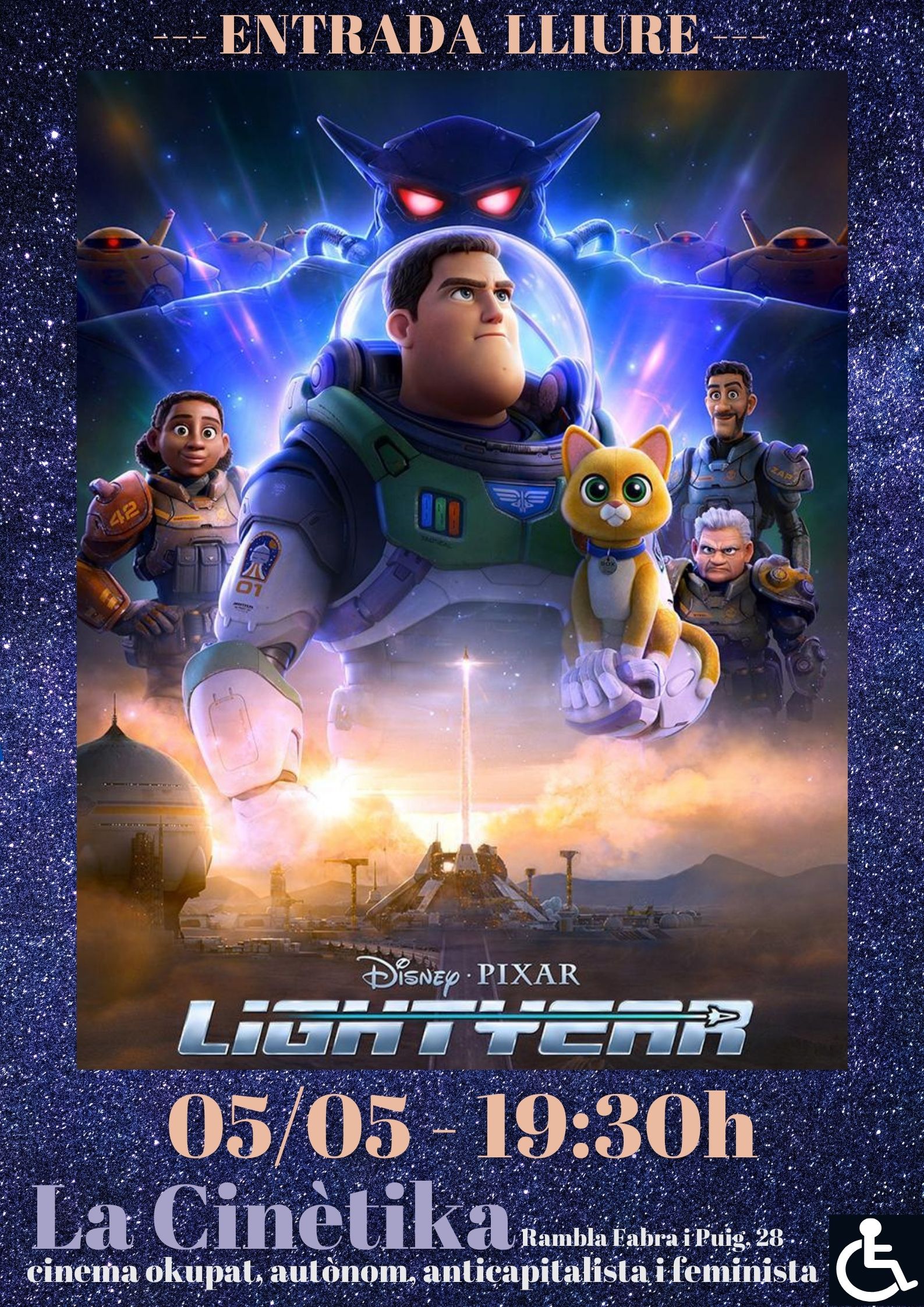 05/05/2023 19:30h – SALA 10 – Lightyear 2022, 100 min. EUA, Angus MacLane, castellà La història de l’origen de Buzz Lightyear, l’heroi que va inspirar la joguina de Toy Story, i que ens dona a conèixer al llegendari Guardià Espacial que acabaria comptant amb generacions de fans.