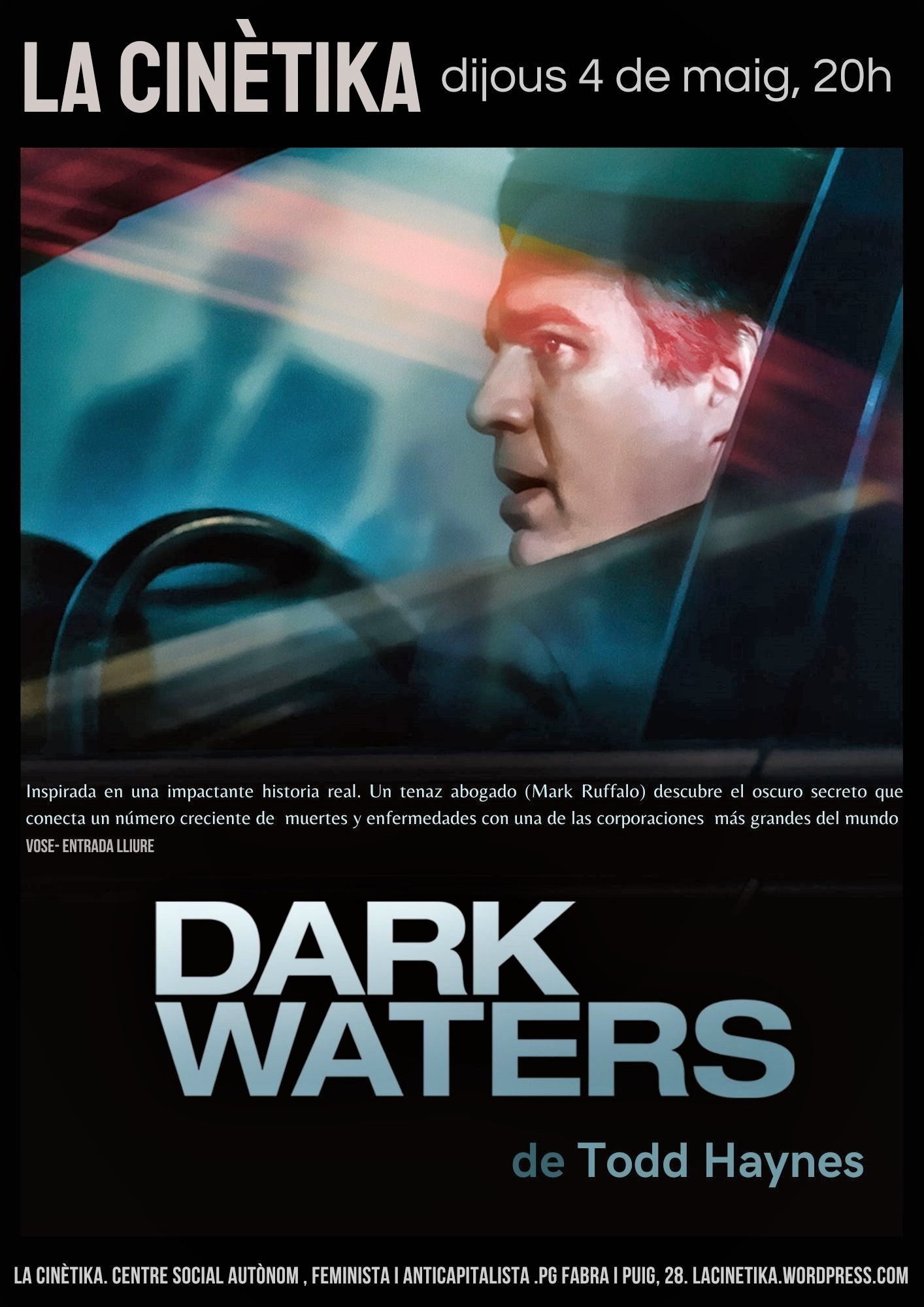 Todd Haynes. Dark waters. Estats Units. 2019. Ficció.Drama. 2h6m. VOSE. Inspirada en una impactante historia real, un tenaz abogado (Mark Ruffalo) descubre el oscuro secreto que conecta un número creciente de muertes inexplicables con una de las corporaciones más grandes del mundo. En el proceso, arriesga todo: su futuro, su […]