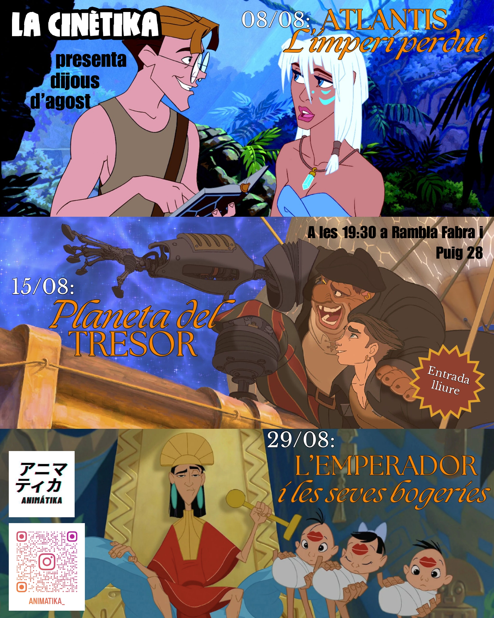 Avui dijous 29d’agost a les 19:30h, Animàtika projectarà L’Emperador i les seves bogeries en VOSE (2000). Sinopsi:L’emperador Kuzco és un home que ho té tot; és jove, és un emperador, però també està molt ocupat. Ha de mantenir el seu estil, acomiadar a la seva consellera sospitosa i té previst […]
