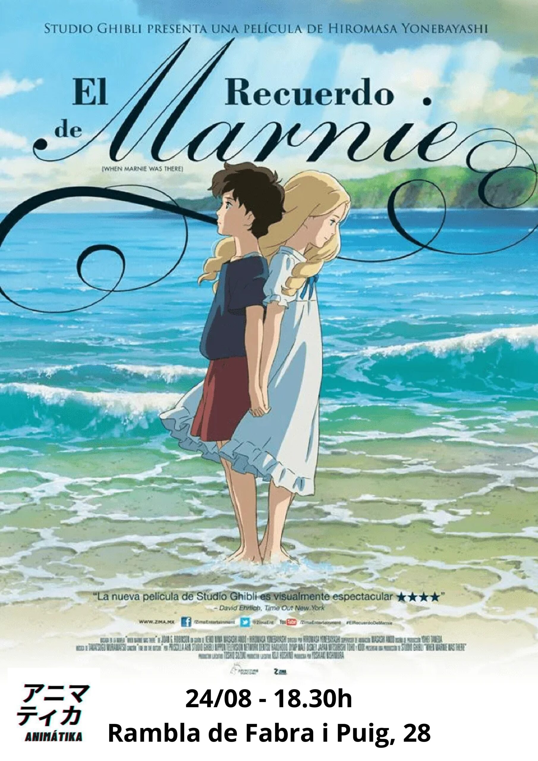 Avui dissabte 24 d’agost a les 18.30h, Animàtika projectarà El record de Marnie (2014) Doblatge català, dirigida per Hiromasa Yonebayashi. Amb motiu del re-doblatge de tres pel·lícules de Ghibli, aprofitem per projectar aquesta pel·lícula amb doblatge en català i, possiblement, comptarem amb professionals que han participat en el procés de […]