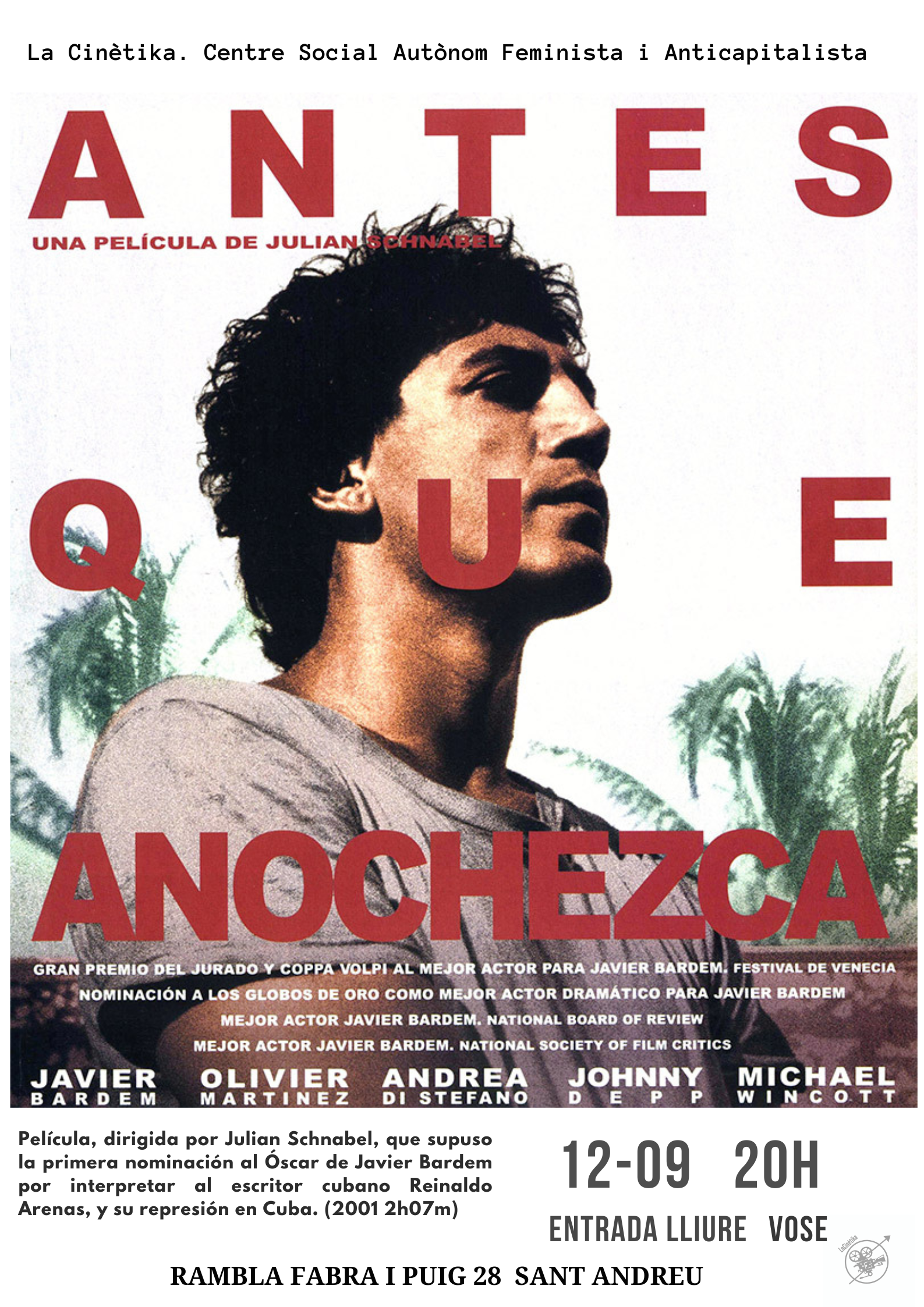 Ficción, Estados Unidos – 125m Biografía sobre Reinaldo Arenas (Javier Bardem). A causa de sus obras y su reconocida y pública homosexualidad durante una etapa del régimen de Castro, fue reprimido y encarcelado y finalmente obligado a huir de Cuba para exiliarse en Nueva York. El film recorre la vida […]