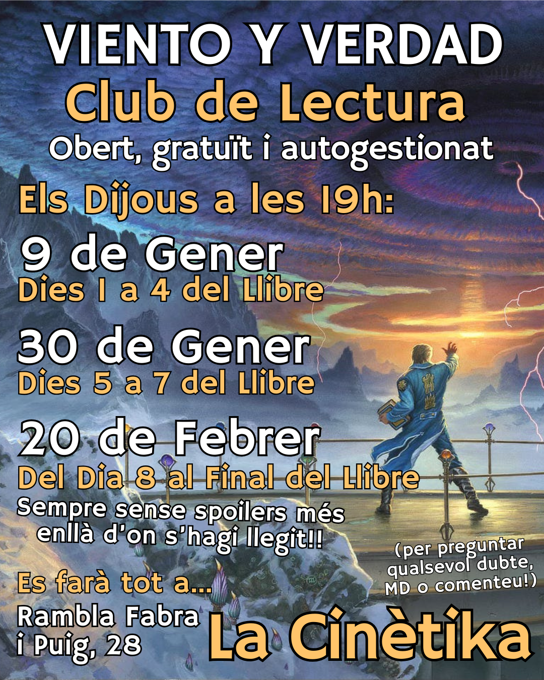 La 5a entrega de l’Archivo de las Tormentas, Viento y Verdad, ja ha arribat, i algunes fans de la saga farem un club de lectura del clímax de la primera meitat de la saga! Farem tres sessions: el dijous 9 de gener vam començar llegint els quatre primers Dies del […]