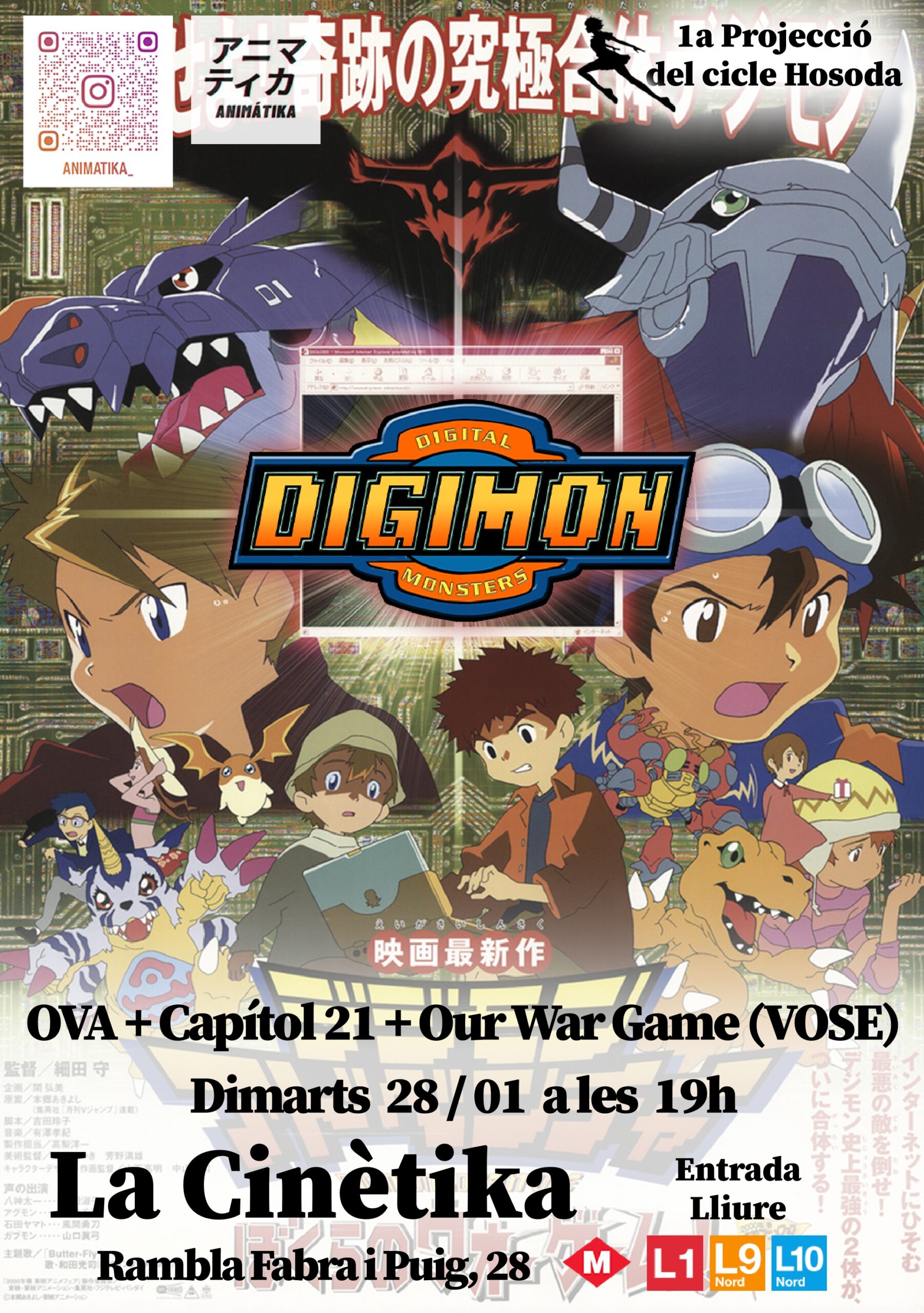 Projecció anul.lada per poder assistir a la manifestació contra el desallotjament de l’Antiga Massana avui a les 19:30h a la Rambla del Raval. Avui dimarts 28 de gener a les 19h, Animàtika projectarà el Cicle Mamoru Hosoda: Digimon [Digimon Adventure OVA 1999 + Our War Game 2000 (Mamoru Hosoda) VOSE] […]