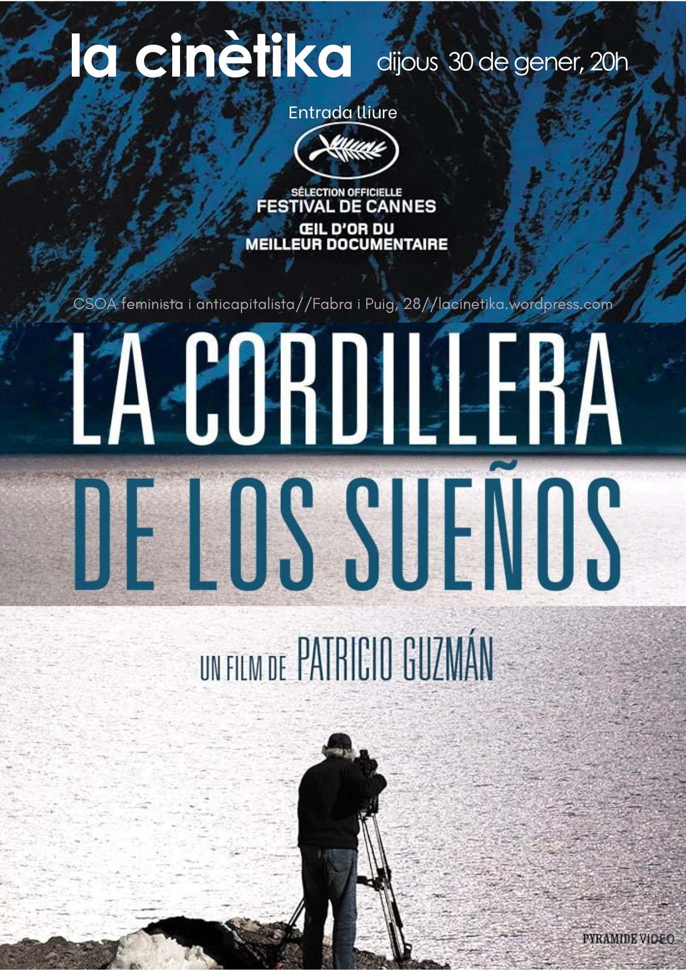 Avui dijous 30 de gener a les 20h, Cinema dijous projectarà La cordillera de los sueños, d’1 hora i 48 minuts de durada, versió subtitulada al castellà. Sinopsi:La cordillera de los sueños (2019) és l’última part de la trilogia documental de Patricio Guzmán, iniciada en 2010. En aquest film, Patricio […]