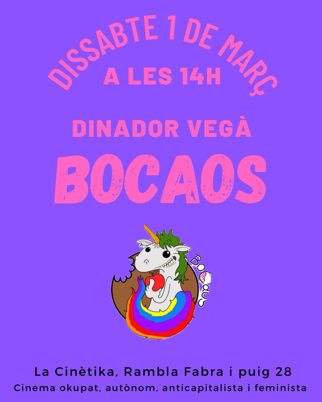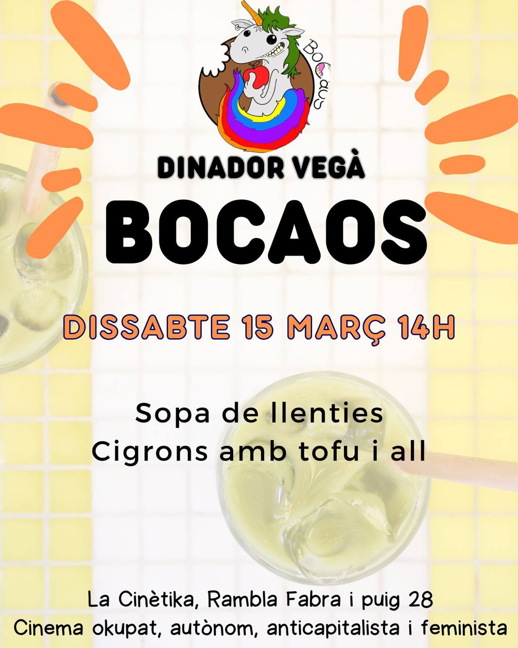 Serà el dissabte 15 de març, a les 14h al hall de l’entrada.I com sempre, tot vegà i tot boníssim!