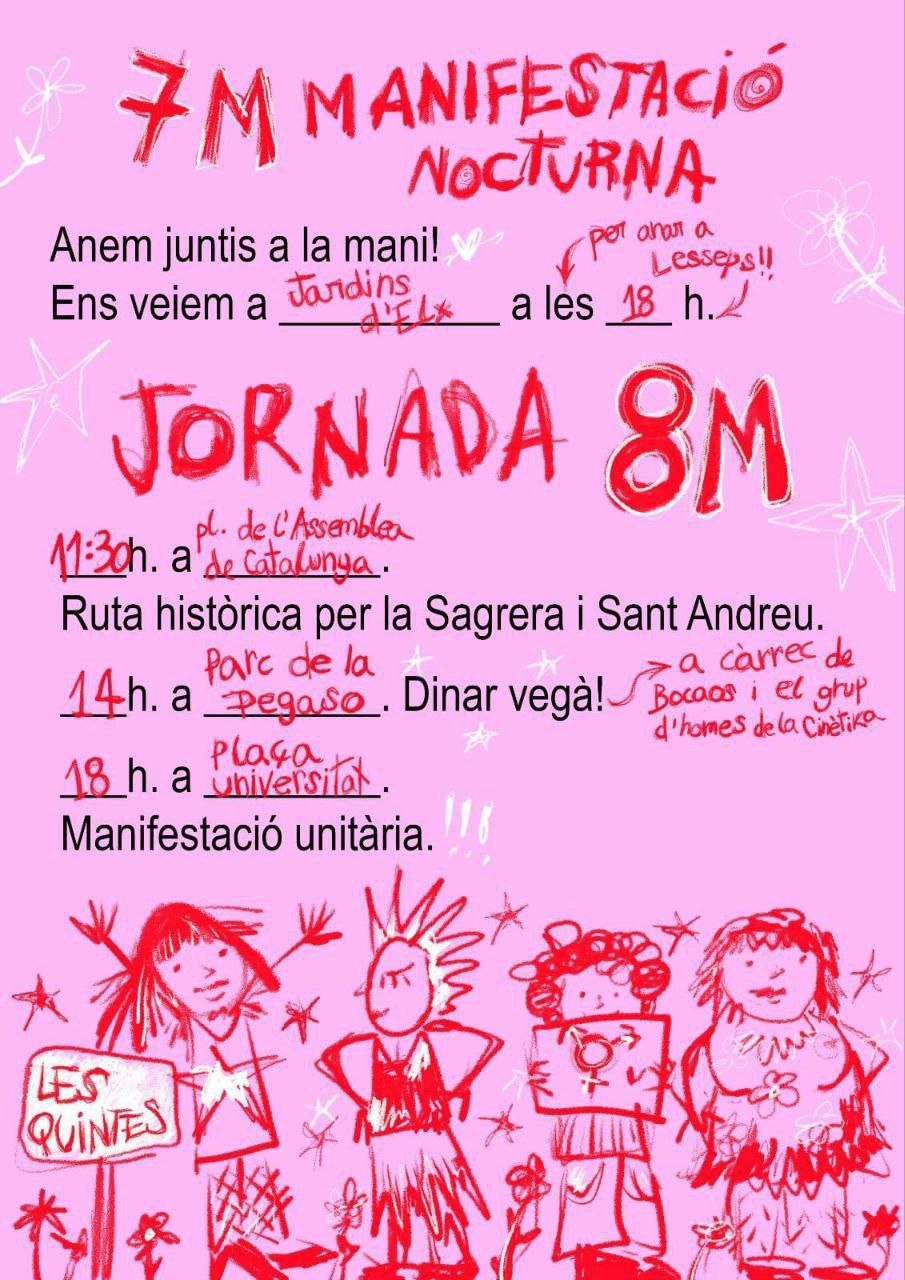 Des del Comitè 8M i Les Quintes – Col·lectiu Feminista de La Sagrera i Sant Andreu ens organitzem per un feminisme que s’estengui des dels nostres barris fins a tots els racons del territori. Vine amb nosaltris a les convocatòries locals i de ciutat! 🟣 7 de marçAnem juntes a […]