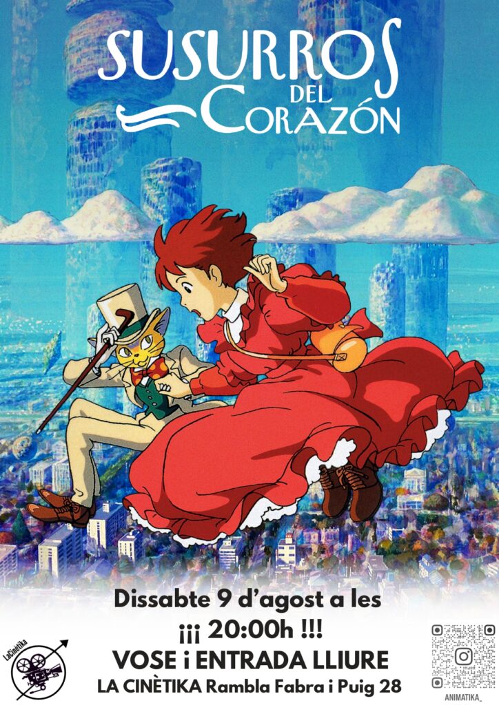 El dissabte 9 d’agost a les 20h a la Sala 10, Animàtika projectarà Susurros del corazón, dirigida per Yoshifumi Kondō, de 111 minuts de durada, VOSE (1995).