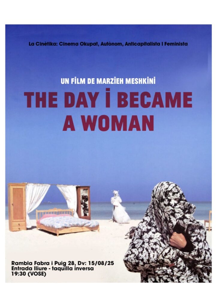 Avui divendres 15 d’agost a les 19:30h, Cinema divendres projectarà The Day I became a Woman, dirigida per Marzieh Makhmalbaf, de 78 minuts de durada, VOSE (2000).
