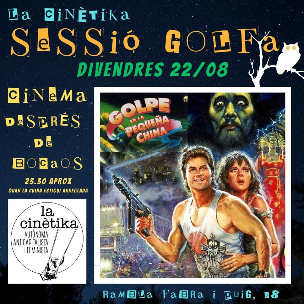 Avui divendres 22 d’agost, farem cinema després de Bocaos, aproximadament a les 23:30h projectarem Golpe en la pequeña China (Big trouble in little China) dirigida per John Carpenter, de 99 minuts de durada (1986). Versió doblada al castellà amb subtítols en anglés.