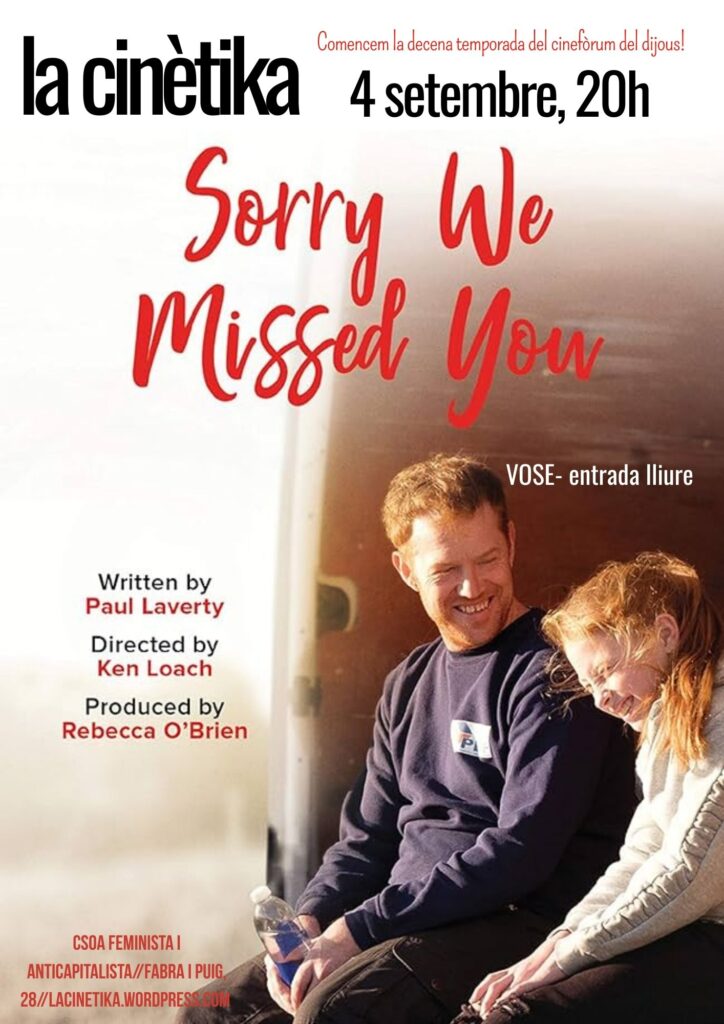 Torna cine dijous el 4 de setembre a les 20 h a la Cinètika i projectem Sorry we missed you dirigida per Ken Loach en 2019. Versió original amb subtítols en castellà, d’1 hora 42 minuts de durada.