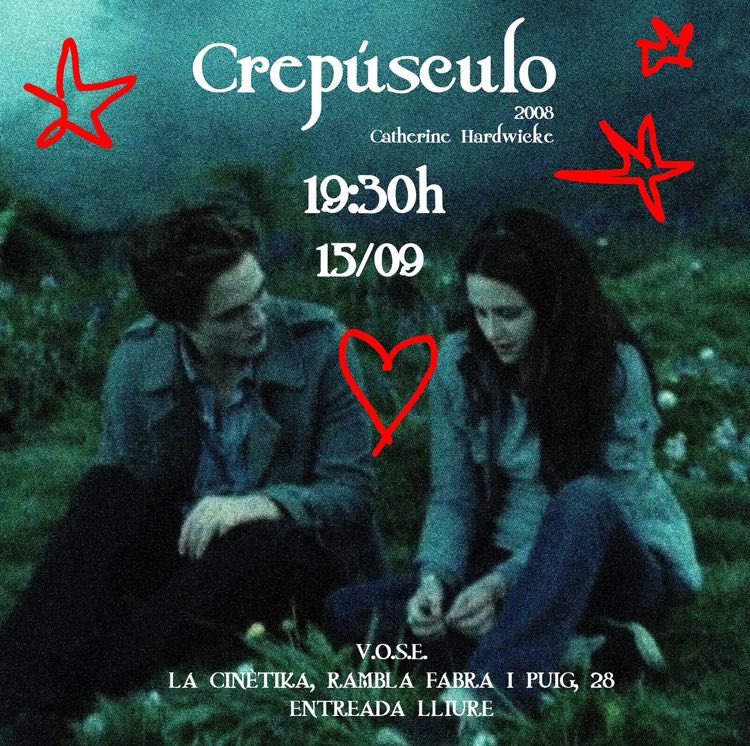 Avui dilluns 15 de setembre a les 19:30h, Cinema dilluns projectarà Crepúsculo, dirigida per Catherine Hardwicke, de 122 minuts de durada, VOSE (2008).