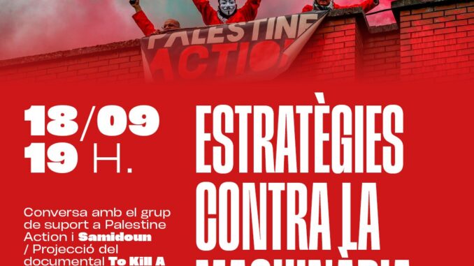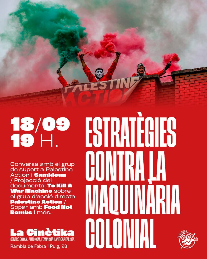 Us convidem a una activitat en suport a Palestine Action i per conversar sobre les estratègies per fer front a la maquinària colonial des del nostre context geogràfic i polític.