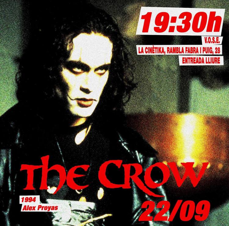 Avui dilluns 22 de setembre a les 19:30h, Cinema dilluns projectarà The Crow / El Corb, dirigida per Alex Proyas, de 97 minuts de durada, VOSE (1994).