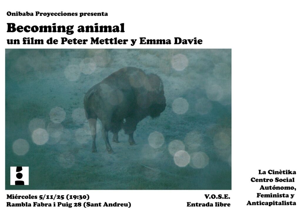 La primera sessió serà el dimecres 5 de novembre a les 19:30h i projectarem Becoming Animal, dirigida per Peter Mettler i Emma Davie, de 78 minuts de durada, VOSE (2018).