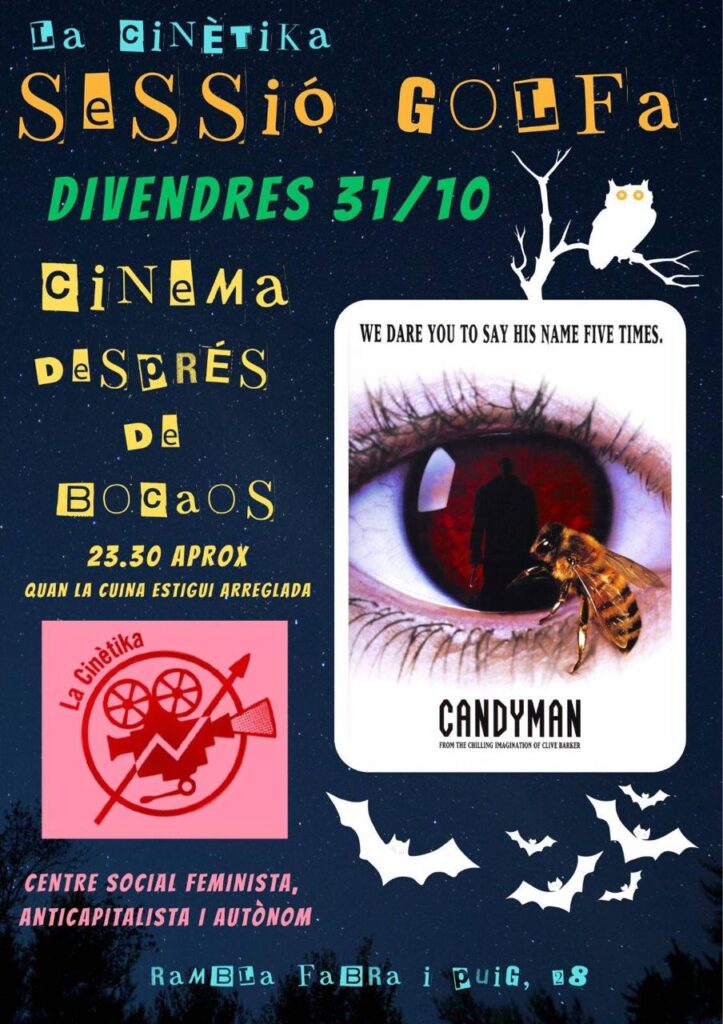 Avui divendres 31 d’octubre a les 23.30h aproximadament, projectarem Candyman, dirigida per Bernard Rose, de 99 minuts de durada, VOSE (1992).