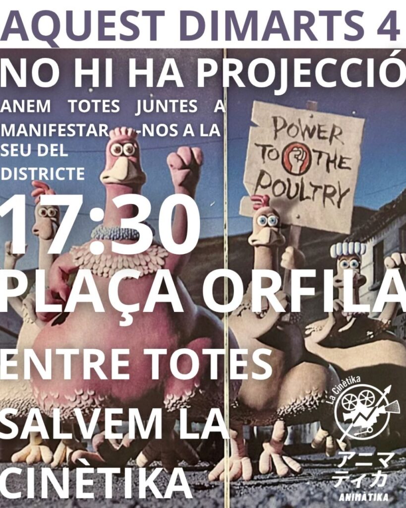 Anem a la mani de Plaça Orfila a les 17:30h per defensar la Cinètika!