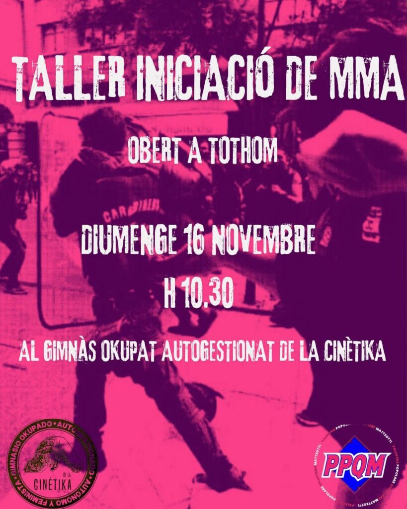 Avui diumenge 16 de novembre a les 10:30h, farem un taller d’inicació a les MMA.