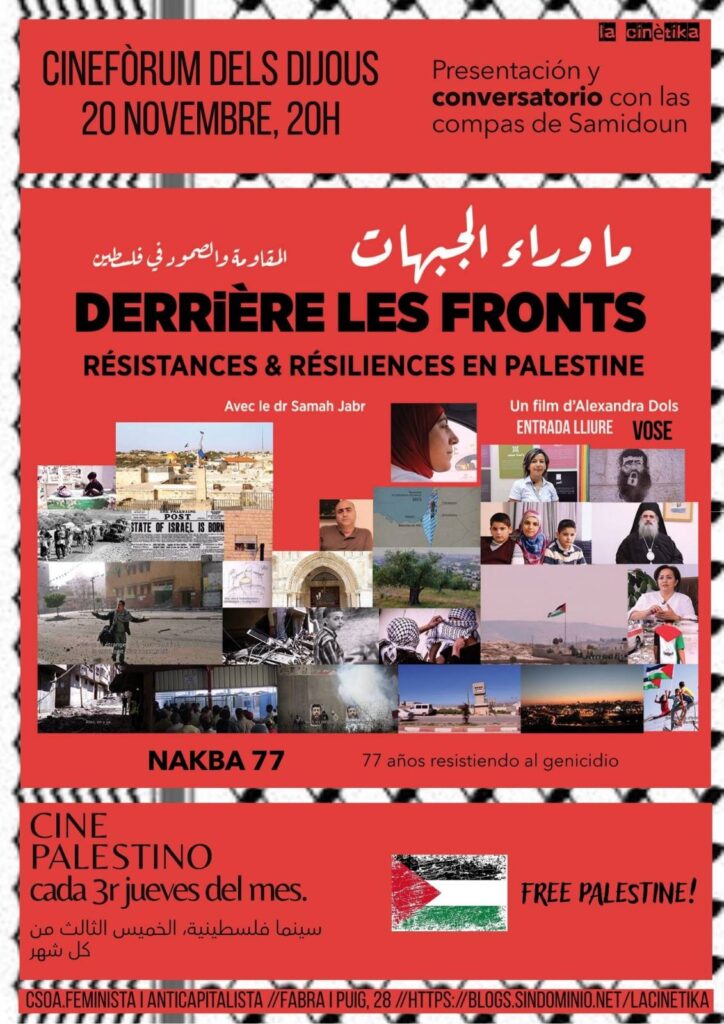 Això és avui: 20/11/25 Cinema Palestí- Cinema Dijous projecta Derrière les fronts : résistances et résiliences en Palestine Dir. Alexandra Dols. VOSE (2016)