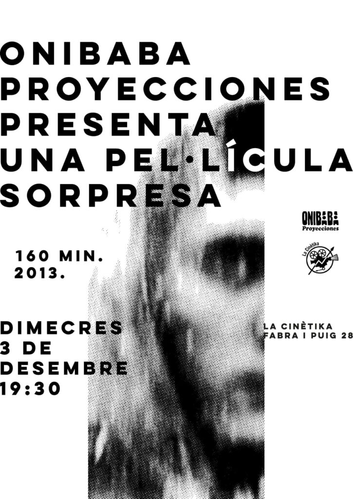 El dimecres 3 de desembre a les 19:30h, Onibaba Proyecciones farà una Projecció Sorpresa, durada: 160 minuts (2013).