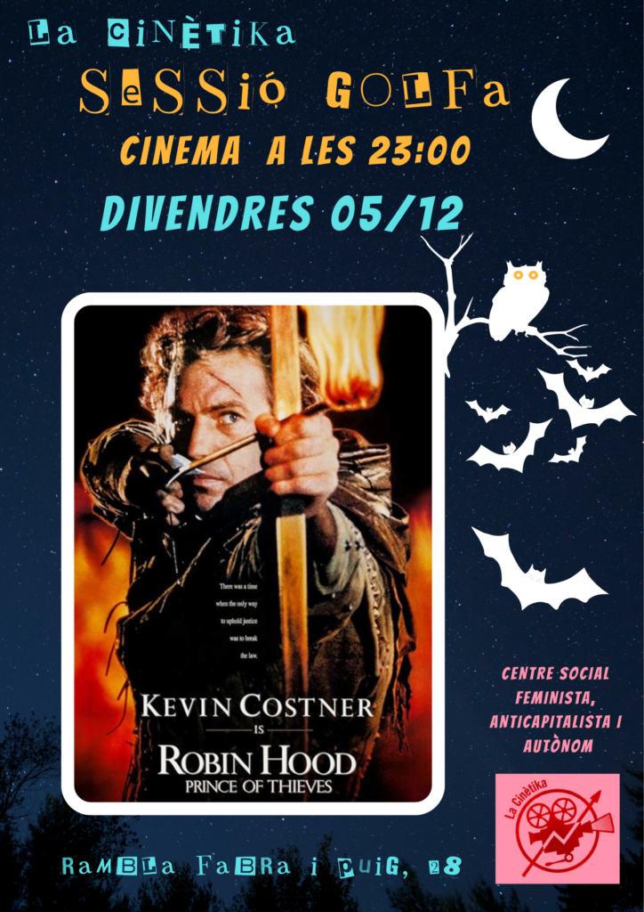 Aquest divendres 5 de desmbre a les 23h, projectarem Robin Hood: Príncep dels lladres (Robin Hood: Prince of thieves), dirigida per Kevin Reynolds, de 143 minuts de durada, versió doblada al català (1991).