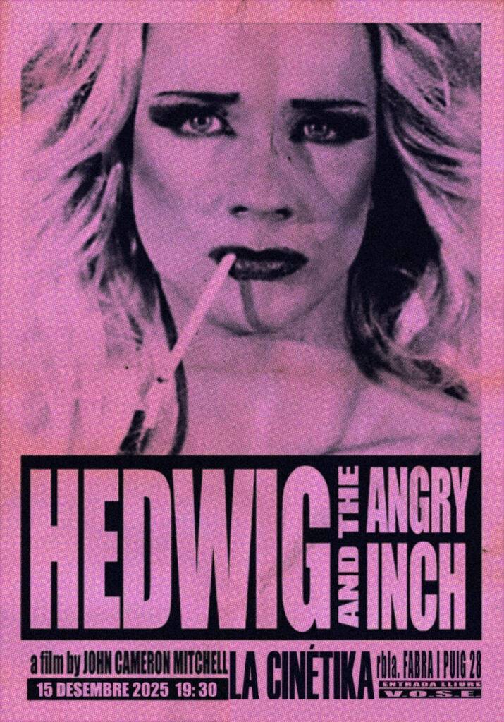 El dilluns 15 de desembre a les 19:30h, Cinema dilluns projectarà Hedwig and the Angry Inch, dirigida per John Cameron Mitchell, de 94 minuts de durada (2001).