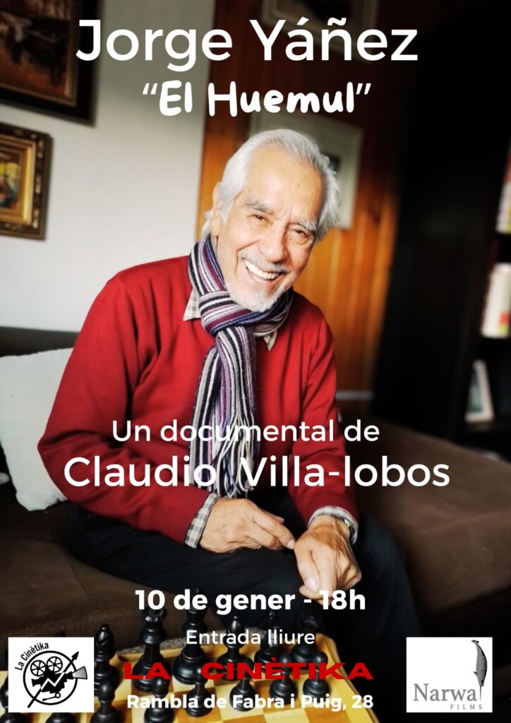 El dissabte 10 de gener a les 18 hores projectarem el documental sobre Jorge Yáñez, artista xilè que representa el millor de la cultura popular del seu país: Actor de cinema, teatre i TV, Poeta i Payador, compositor de nombroses cançons entre les quals es destaca el Capell de llana. La seva trajectòria s’estén per més de 60 anys al servei del seu poble. Ha gravat més de 20 discos amb poesia i cant popular de Xile i actuat en nombroses pel·lícules i sèries de TV el que ho ha convertit en un dels més estimats artistes del seu país i ha rebut el reconeixement expressat en el premi nacional de música. En aquest documental ens endinsem en els aspectes més íntims de la seva obra i el seu pensament. L’obra té una durada de 48 minuts i ens ofereix una visió nova sobre la seva vida.