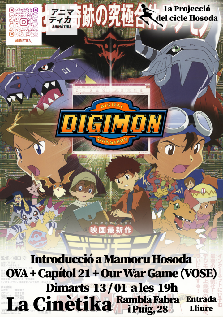 Dimarts 13 de gener a les 19h, Animàtika projectarà l’inici del Cicle Mamoru Hosoda amb Digimon [Digimon Adventure OVA 1999 + Our War Game 2000 (Mamoru Hosoda) VOSE]