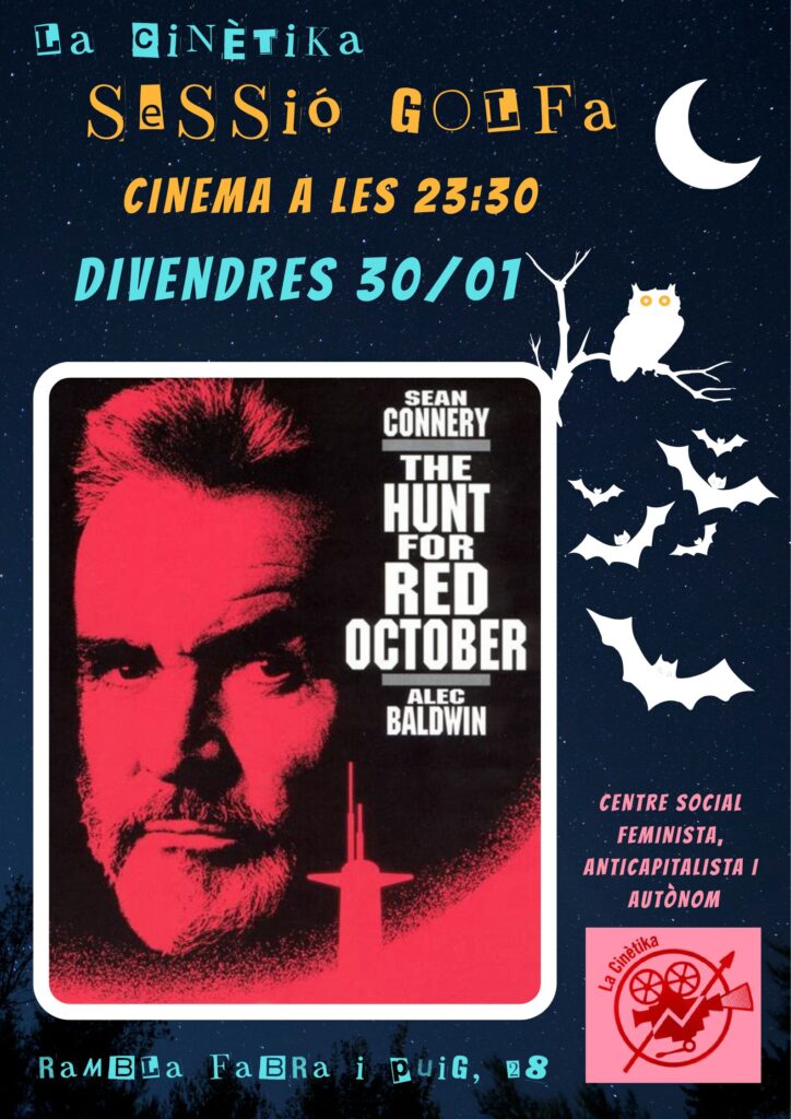 Aquest divendres 30 de gener a les 23.30h projectarem The hunt for Red October (La caça del Octubre Roig), dirigida per John McTiernan, de 135 minuts de durada, VOSE (1990).