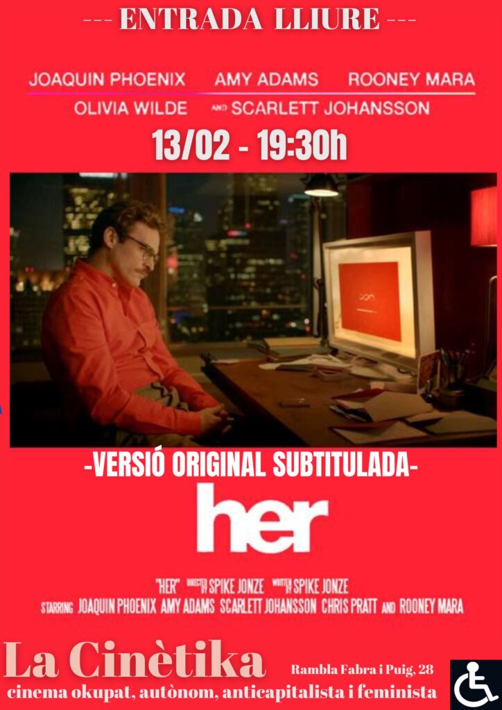 13/02/26, 19:30h – SALA 10 – HER, 2013, 126 min. EUA, Spike Jonze, VOSE.