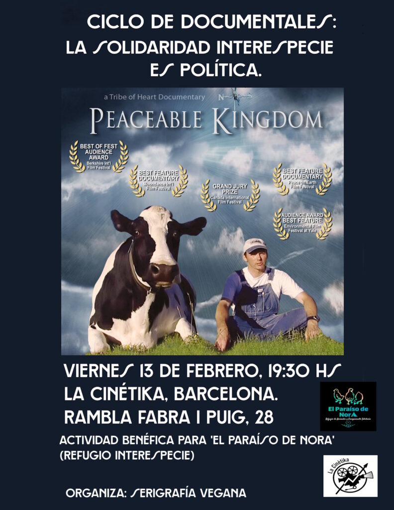 Projectarem el Cicle de projeccions la solidaritat interespecie és política per visibilitzar diverses situacions, una d’aquestes és la realitat dels santuaris de base, on les persones que tiren endavant llocs on viuen i conviuen animals ex-víctimes de l’especisme, no reben ajuda de ningú més que de la militància de base o persones solidàries, i és mitjançant el cicle que es pretén visibilitzar la tasca del refugi interespècie “‘El Paradís de la Nora”.