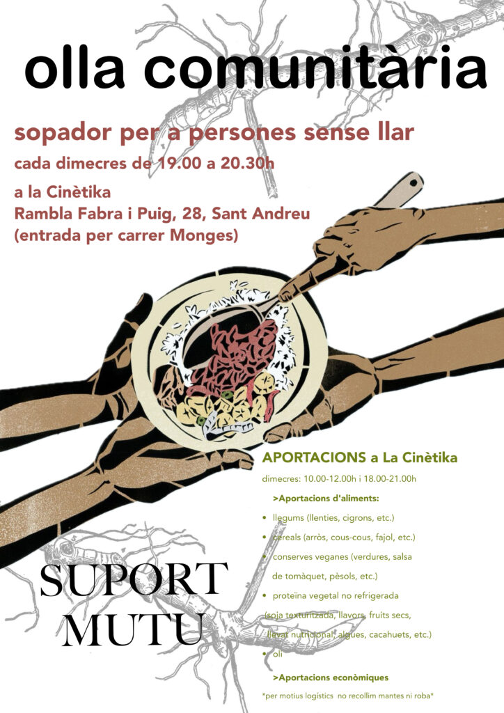 Durant tots els dimecres dels mesos de febrer i març farem un sopador popular gratuït per persones sense llar.