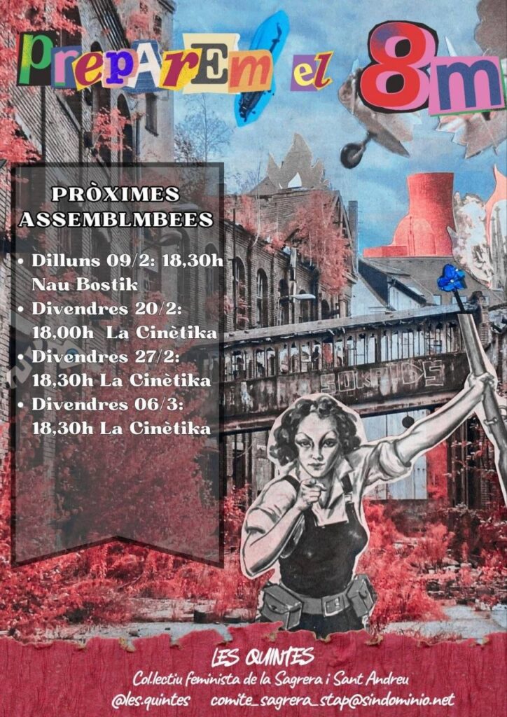 Això és avui: 20/02/26 Assemblea per prepar el 8M a St. Andreu 20 de febrer de 2026 cinetika COL·LECTIUS, La Cinètika rules 0 Avui divendres 20 de febrer a les 18h a La Cinètika.