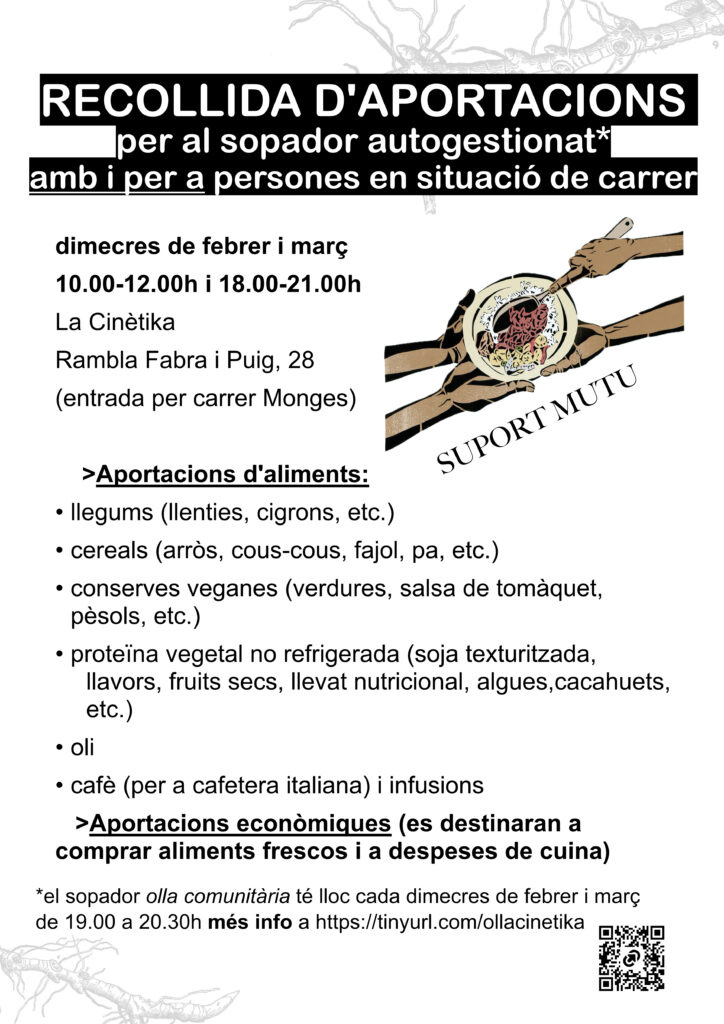 Aportacions econòmiques (es destinaran a comprar aliments frescos i a despeses de cuina).