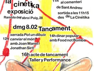 Dissabte 7: 11h – 13h Taller amb vissita al cementiri de Sant Andreu (Quedem a La Cinètika i anem juntis)Diumenge 8: 12h – 17:30h Xerrada art i activisme + Dinar + Taller final + Performance (Desfilada de Dibuxos a Rambla Fabra i Puig) , SALA 1 i Rebedors Entre 2023 […]