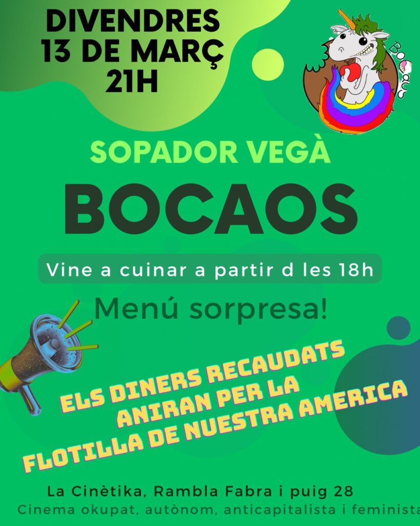 Això és avui: 13/03/26 El menú de Bocaos d’esta setmana, solidari amb la Flotilla de nuestra América