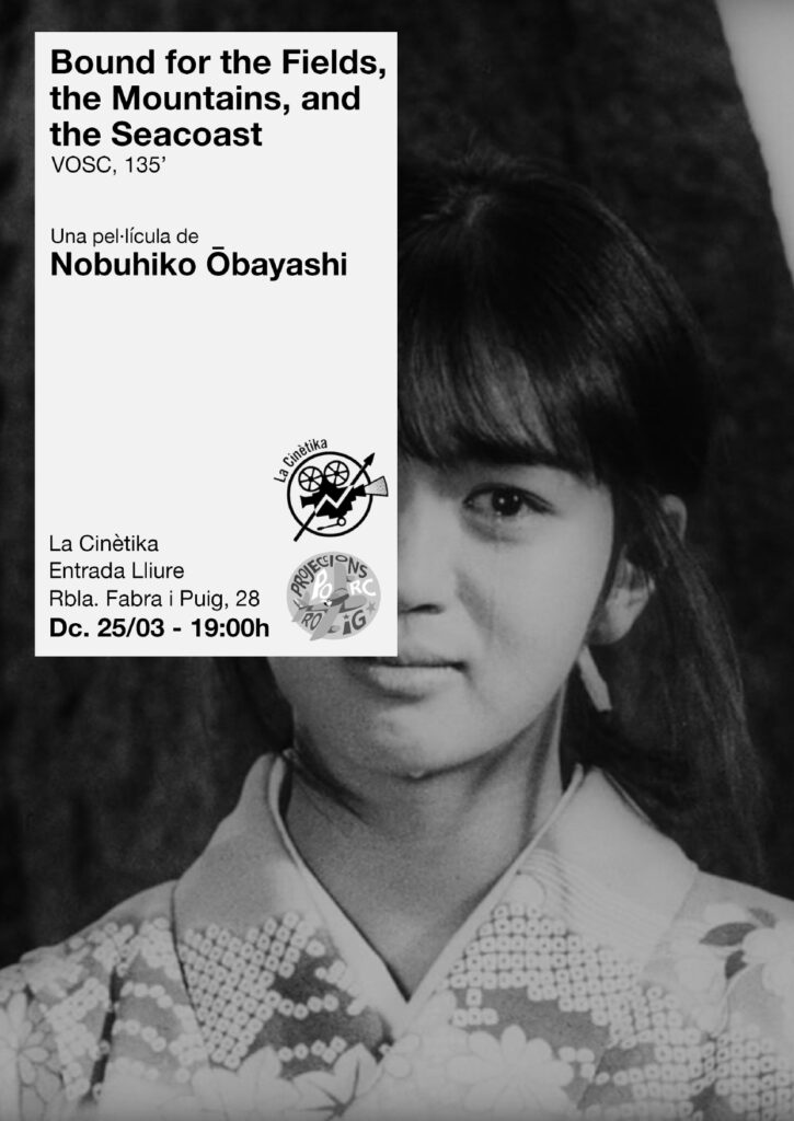 El dimecres 18 de març a les 19h, Projeccions Porc Roig NO projectarà la versió en blanc i negre de Bound for the Fields, the Mountains, and the Seacoast, dirigida per Nobuhiko Ōbayashi, de 135 minuts de durada, en VOSCat (1986).