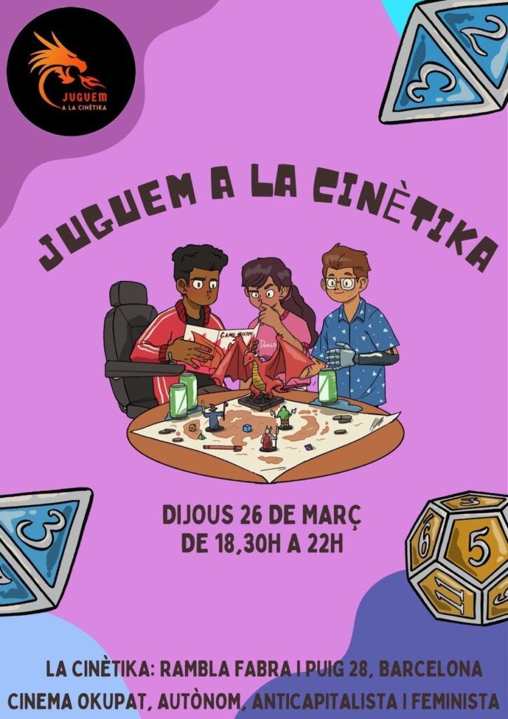 26/03/26 Juguem a La Cinètika 🗓 25 de març de 2026 cinetika PROJECTES 0 El dijous 26 de març a partir de les 18:30h i fins a les 22h estarem al hall de baix jugant a jocs de taula. Ara també ens pots trobar a Mastodon! demà from 18:30 to 22:00 Scheduled ical Google outlook PROJECTES